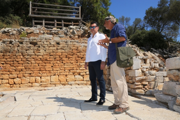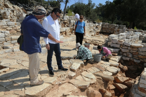 Bodrum Belediye Başkanı Mehmet Kocadon, Bodrum’un Konacık Mahallesi’nde yer alan Leleg uygarlığının kalıntılarının bulunduğu Pedasa Antik Kenti’nde yapılan arkeolojik kazıları inceledi.