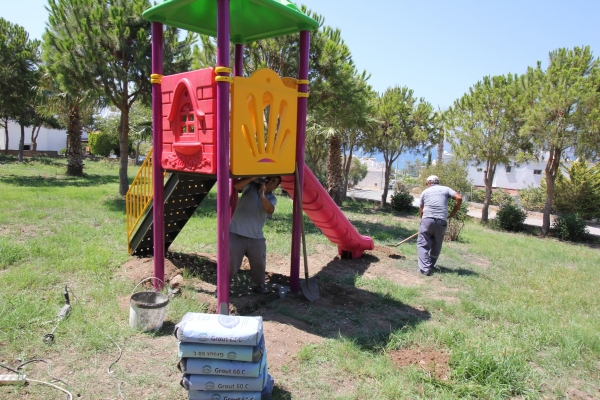 Bodrum Belediyesi Park ve Bahçeler Müdürlüğü ekipleri tarafından gerçekleştirilen çalışmalar kapsamında ekipler en son, Turgutreis Mahallesi 478 Sokak’ta çocuklar için bir oyun parkı kurdu. Öncelikle çocuk parkı olarak belirlenen yerin temizliği yapılarak zemin düzeltildi. Ardından salıncak, kaydırak ve tahterevalliden oluşan oyuncak grubu alana monte edildi.