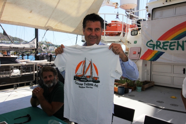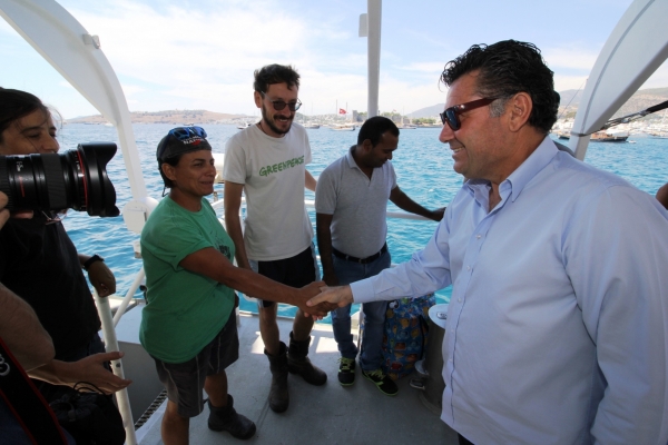 Greenpeace gönüllüleriyle bir araya gelen Bodrum Belediye Başkanı Mehmet Kocadon ise “Çevre dostu bu geminin Bodrum'da olmasından son derece mutluyum. Değerli kaptanı ve mürettebatını da burada ağırlamaktan çok büyük mutluluk duyuyorum. Bodrum çevre dostudur. Denizlerimizle ilgili de çok güzel kampanyalarımız var. Bu kampanyayla birlikte özellikle çevre dostu insanların bu gemi eşliğinde Bodrum’da olması, son derece isabetli oldu. Bize geminin Bodrum'a gelmesi teklifi ulaştığında, bundan mutluluk duyacağımızı söylemiştik. Kaptanımızın da dediği gibi; rüzgar gücüyle giden bu gemi, gönül isterdi ki bizim Bodrum’da düzenlemiş olduğumuz Bodrum Cup Ahşap Yelkenli Yat Yarışlarına da katılsın. Bunu da gerçekleştirebileceğimize inanıyorum. Çünkü bu özel gemi, Bodrum’a isim olarak da yelken olarak da çok yakışıyor” şeklinde konuştu.