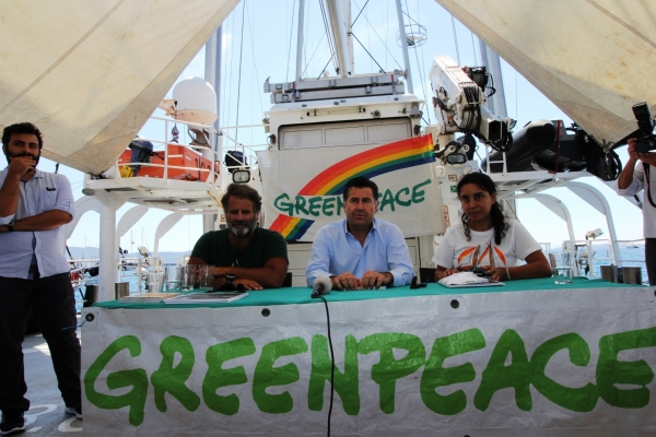 Lübnan’dan hareket ederek Bodrum’a yelken açan ve Bodrum’un Kumbahçe İskelesi’ne yanaşıp demir atan geminin kaptanı Peter Henry Willcox, yaptığı açıklamada; “İçinde bulunduğumuz gemi, Greenpeace’in 3. Gemisidir. Bu gemi çoğunlukla rüzgar enerjisi ile çalışıyor sadece milimetrik hesaplamalar olduğunda motorla çalışıyor. 35 yıldır bu ekibin içerisindeyim ve şu anda Bodrum’da olmak mutluluk verici. Türkiye’ye daha önce 3 kez gelmiştim ama Bodrum’a ilk gelişim. Burada olmaktan çok mutluyum.” dedi.