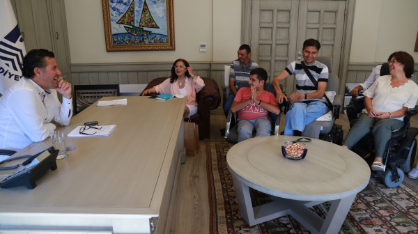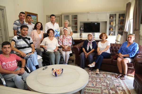 İmar ve Şehircilik Müdürlüğü'ndeki Başkanlık Makamında gerçekleşen ziyarete Yakaköy Sevgi Sanat Atölyesi öğrencileri ve KADEM Örgü Grubu ile el sanatları eğitmeni Hilal Karataş katıldı.