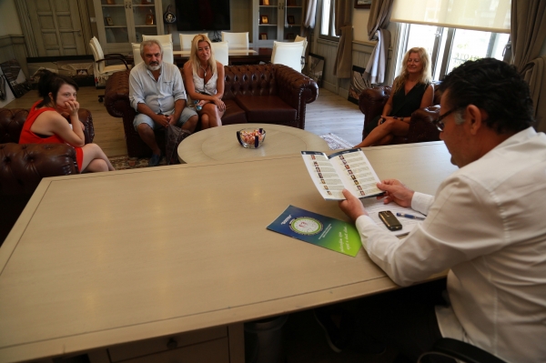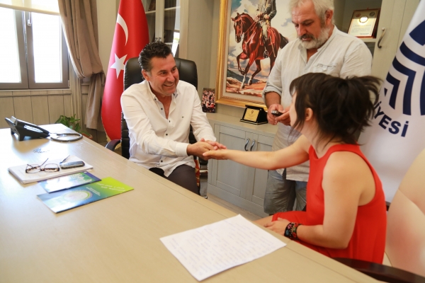 Başkan Mehmet Kocadon'un Ortakent'teki Başkanlık Makamında gerçekleşen görüşmeye, DOSTEV Derneği Başkan Başkanı Arzu Doğan ile Başkan Yardımcısı Halil Doğan da katıldı. Röportaj kaydı öncesi Naz Polat ile sohbet eden Başkan Kocadon, sosyal sorumluluk projelerine katılmaktan çok mutlu olduğunu belirtti.