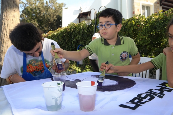 Bodrum Sağlık Vakfı Begonvil Özel Eğitim ve Rehabilitasyon Merkezi’nde eğitim gören özel öğrenciler, ellerine aldıkları fırçalarla 28. The Bodrum Cup Uluslararası Deniz Festivali ve Regatta’ya katılan tekneler için hazırlanmış 100 flamayı çeşitli renklerde boyadı.