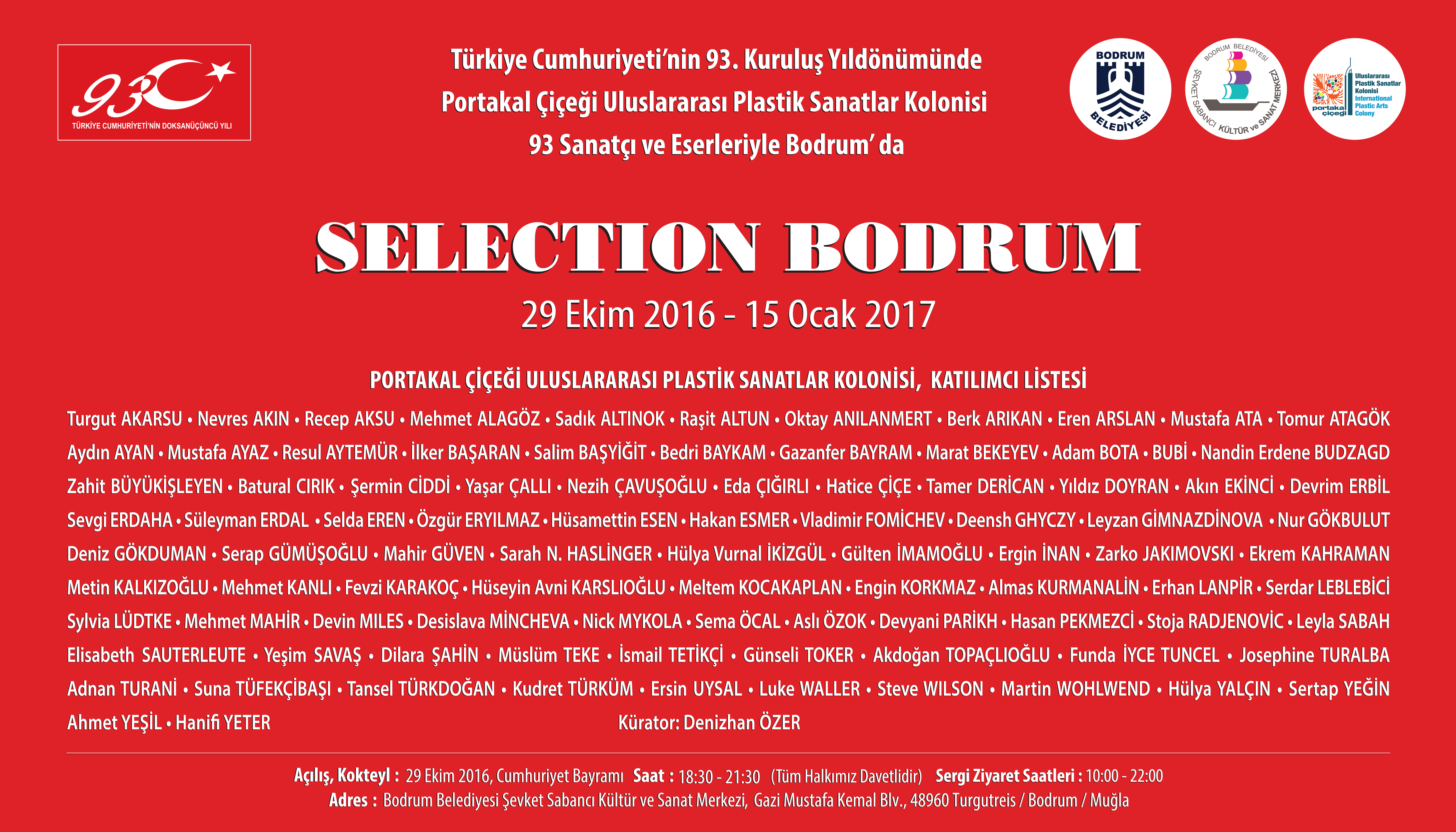 Bodrum Belediyesi’nin destekleriyle Bodrum Belediyesi Şevket Sabancı Kültür Merkezi'nde Türkiye Cumhuriyeti’nin 93. Kuruluş Yıldönümünde “Portakal Çiçeği Uluslararası Plastik Sanatlar Kolonisi” “Selection Bodrum” sergisi, 93 sanatçı ve eserlerini sanatseverlerle buluşturacak.