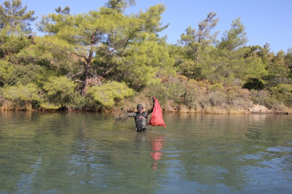 Günün ikinci dalışı ise Amazon Koyu’nda (Börtübet) yapıldı. Dalgıçlar tarafından yapılan çalışma sırasında bölgenin özellikle katı atıklarla çok fazla kirlenmediği tespit edildi.