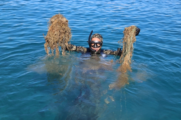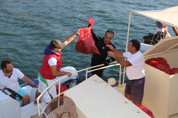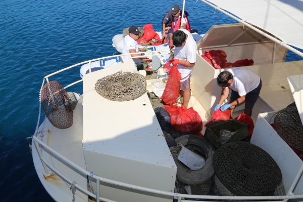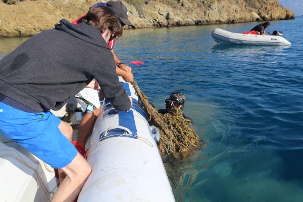 Tuzla Koyu'nda ise serbest ve tüplü dalışlar sonrasında koydan çoğunluğu balıkçı ağları ve çelik elektrik telleri olmak üzere yaklaşık 600 kilogram katı atık çıkarıldı.