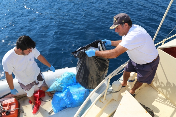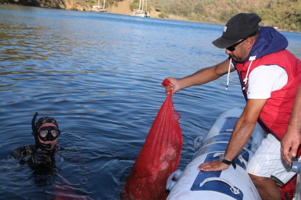 Uzun Liman Koyunda sabah erken saatlerde yapılan 40 dakikalık serbest ve tüplü dalışlar sonunda koylardan 150 kilogram civarında katı atık çıkarıldı.