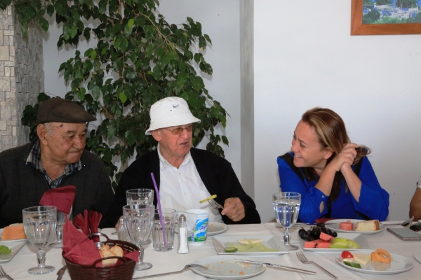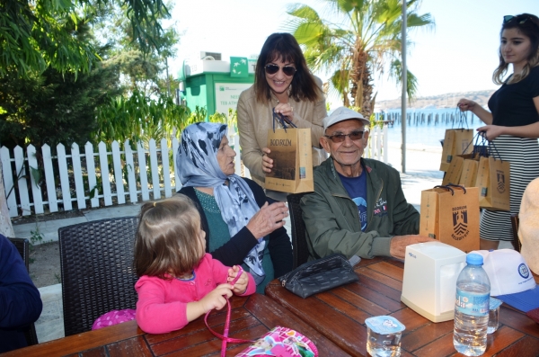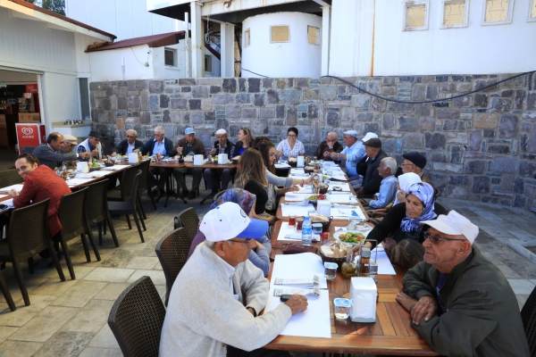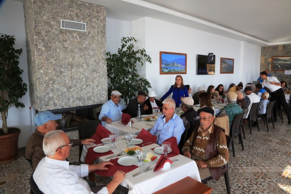 Evlerinden teker teker alınan büyükler, Kumbahçe kafeye getirildi. Kale manzarası eşliğinde keyifli dakikalar geçiren misafirlere yemek ikramında bulunuldu.
