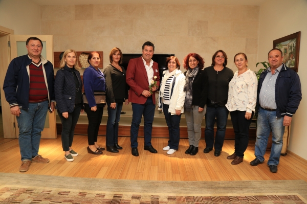 Başkanlık makamında gerçekleşen ziyarette Mehmet Kocadon, sınıf arkadaşları Filiz Karaöz, Suzan Çakır, Semra Apak, Nursen Tezer, Ülkü Yanık, Münire Karabağlı, Berrin Özgüç, Hasan Sinop ve İsmail Özyurt ile birlikte keyifle bol bol eski günleri andı.