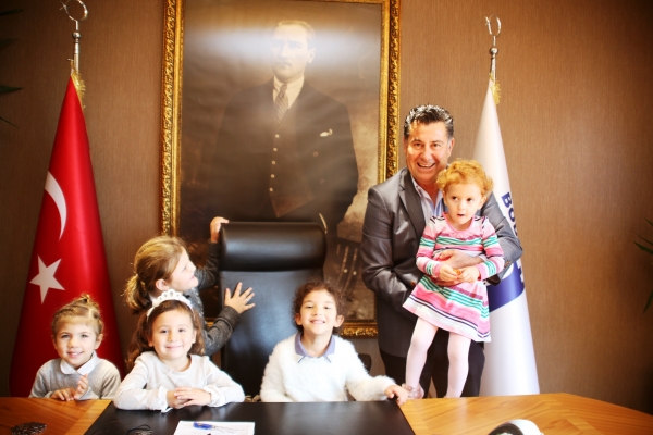 Barış Akay Anaokulu’nda eğitim gören minik öğrenciler, Başkan Mehmet Kocadon’la tanışmak için makamında kendisini ziyaret etti.