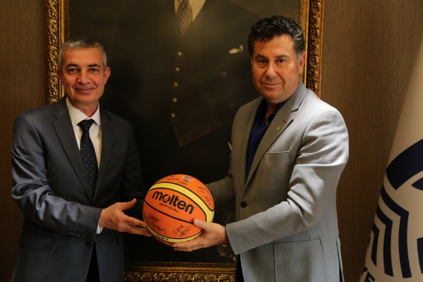 Kulüp yöneticileri ziyaret bitiminde Başkan Mehmet Kocadon’a basketçilerin imzalamış olduğu basket topu ile birlikte kulübün armalarının bulunduğu hediyeleri takdim ettiler.