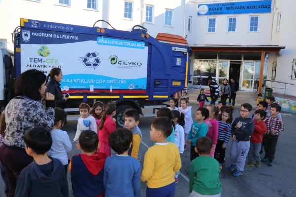 Atık pil kutuları ile geri dönüşüm kutularını eğitim sonunda okulda belirlenen alanlara bırakan Bodrum Belediyesi ekipleri, biriken ambalaj atıklarının ayrıştırılarak düzenli olarak toplanmasını sağlayacak.