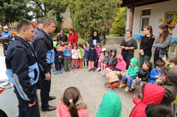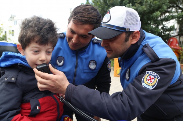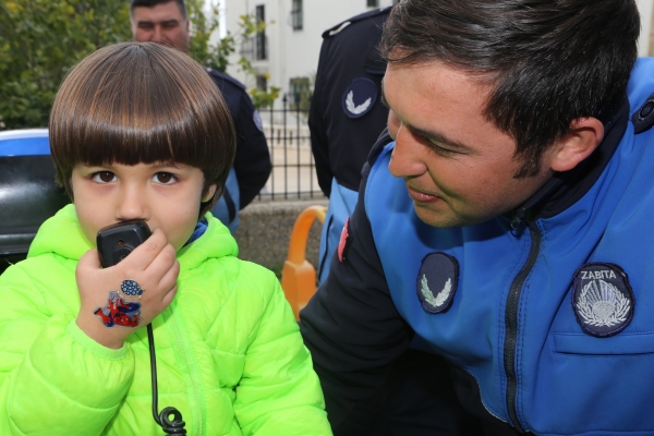 Anaokulu öğrencilerine zabıta birimi ile ilgili bilgiler verilerek kullanılan araçlar tanıtıldı.
