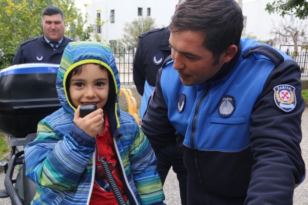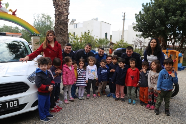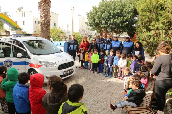 Anaokulu öğrencilerinin kara taşıtlarını yakından tanıması ve minik öğrencilere araçların sadece ulaşım amaçlı olmadığını aynı zamanda iş ve meslek dallarında da kullanıldıklarını anlatmak amacıyla hazırlanan program doğrultusunda Bodrum Belediyesi Zabıta Müdürlüğü’ne ait araçlar, anaokulunun önüne getirildi. Öğrencilerin gezerek gözlemlediği zabıta araçları hakkında bilgiler verildi. Okul bahçesinde ise öğrencilere zabıta trafik araçları ile trafik kontrollerinde kullanılan araç ve gereçler tanıtıldı.