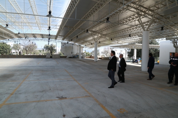 Bodrum Belediye Başkanı Mehmet Kocadon, bir süre önce yapımı tamamlanarak vatandaşın kullanımına açılan Bitez Kapalı Pazar Yeri’nde incelemelerde bulundu.