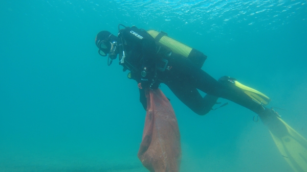 Denizden 143 kg plastik, 19 kg cam, 17 kg metal, 47 kg lastik, 40 kg tekstil olmak üzere 266 kg katı atık çıkarıldı.