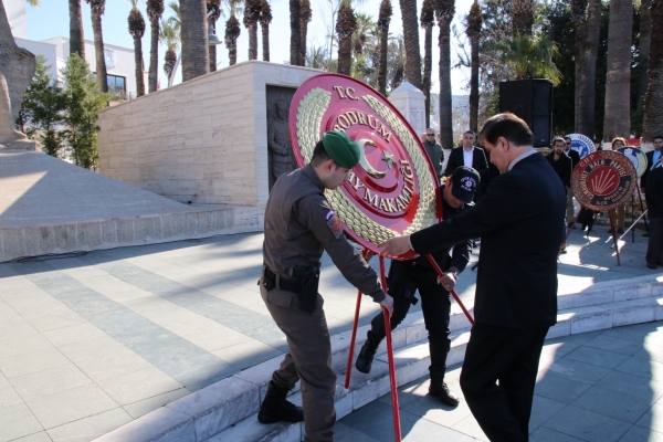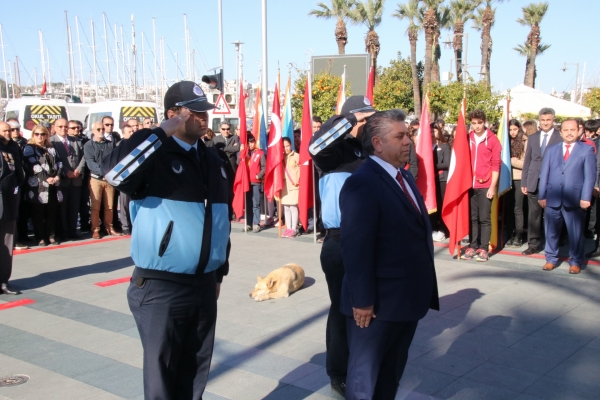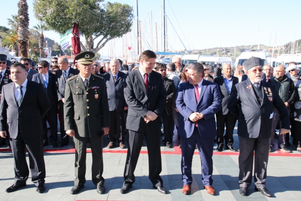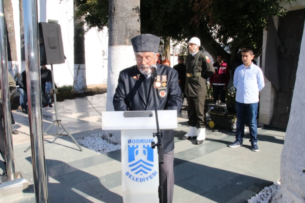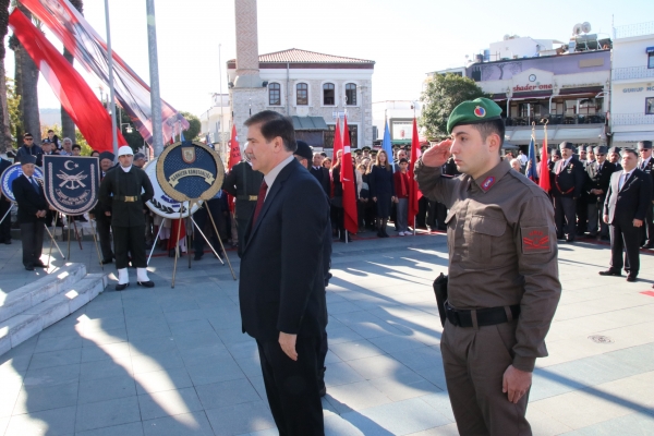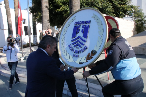Saygı duruşunda bulunulması ve saygı atışının ardından İstiklal Marşı’nın okunmasıyla devam eden tören sonunda çeşitli kurum ve kuruluşlar tarafından Atatürk Anıtı önüne çelenk bırakıldı. Bodrum Muharip Gaziler Derneği Başkanı Hasan Külcü'nün günün anlam ve önemine ait yaptığı konuşmanın ardından tören, Bodrum Belediyesi Herodot Kültür Merkezinde devam etti.