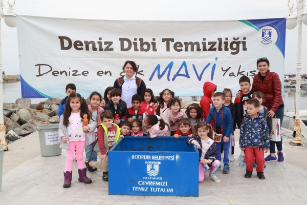 Bodrum Belediyesi Dalış Ekibi’nde görevli dalgıçlar tarafından Turgutreis Mahallesi’nde yapılan deniz dibi temizliğine Zeyyat Mandalinci İlkokulu, Kartanesi Anaokulu ve Marmara Koleji öğrencileri katıldı. Dalgıçların çalışmalarını takip eden öğrenciler, denizden çıkarılan atıkları da dikkatle izledi.