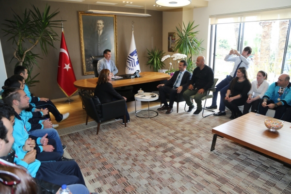 Başkanlık makamında gerçekleşen ziyarete Bodrum Halk Eğitim Merkezi Akşam Sanat Okulu Özel Sporcular Basketbol Takımı, Bodrum Belediyesi Bodrum Spor Kulübü Özel Sporcular Basketbol Takımı ile yine Bodrum Halk Eğitim Merkezi'ne bağlı özel sporcular olan başarılı atlet ve yüzücüler katıldı. Ziyarette sporculara Bodrum Halk Eğitim Merkezi ve Akşam Sanat Okulu Müdürü Mehmet Ünal ile okulun ve aynı zamanda Bodrumspor’un özel sporcular basketbol antrenörlüğünü yapan Ayten Özhan Yılmaz, yüzme antrenörü Yılmaz Çetin ve Ebru Uysal ile atletizm eğitmeni Alper Tuncer eşlik etti. Galibiyet sevincini yaşayan sporcular Başkan Kocadon’a yapmış oldukları ziyarette mutluluklarını paylaştı. Sporcular adına söz alan 15 yaşındaki özel sporcu basketbol oyuncusu Sena Pancar, Başkan Mehmet Kocadon’a bugüne kadar kendilerine çalışmalarında vermiş olduğu destekler için teşekkür etti.