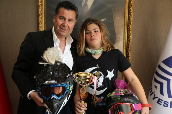 Başkan Mehmet Kocadon, 12 yaşındaki motor sevdalısı Kaya Köksal ile de sohbet ederek sporcuyu makam koltuğuna oturması için davet etti. Ayrıca başkan, HMK üyesi ve belediye çalışanı olan, Enduro yarışında birincilik elde eden Mert Kökçü’ye de başarılarının devamını diledi.