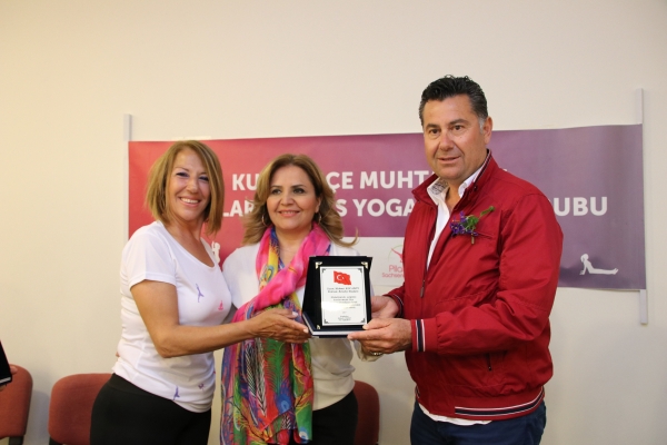 Kumbahçe Mahalle Muhtarı Nil Taşkıran katılımcılara teşekkür ederek, “İlk teşekkürümüz Nazife hanıma çünkü kendisi bize otelini açtı, pilates ve yoga kursu için kullanmamanıza olanak tanıdı.” dedi ve belediye olarak sağladığı destekler için Mehmet Kocadon’a ve yoga - pilates eğitmeni Saliha Çelik’e de teşekkürlerini sundu.