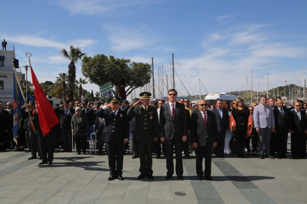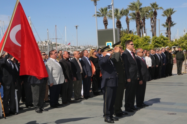 Atatürk Anıtına İlçe Emniyet Müdürlüğü'nün çelenginin konulması ile başlayan tören, saygı duruşu ve İstiklal Marşının okunması ile devam etti. Daha sonra Bodrum Kaymakamı Bekir Yılmaz ile Bodrum İlçe Emniyet Müdürü Haluk Baş günün anlam ve önemi belirten birer konuşma yaptı.