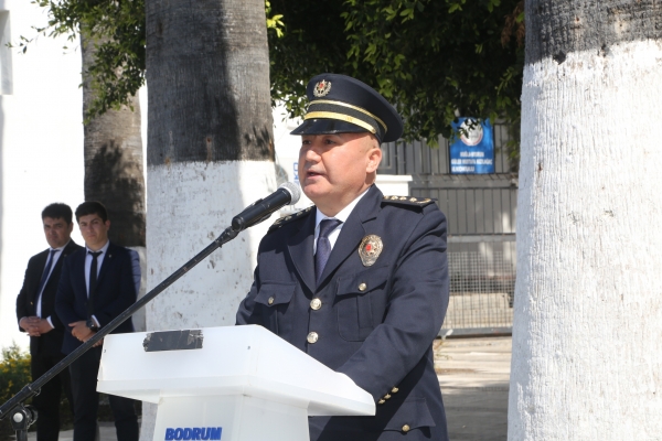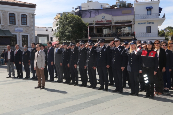 Bodrum Belediye Meydanı'nda düzenlenen törene Bodrum Kaymakamı Bekir Yılmaz, Bodrum Garnizon Komutanı Per. Alb. İzzet Adagideli, Bodrum İlçe Emniyet Müdürü Haluk Baş, Bodrum Belediye Başkan Yardımcısı Kemal Orman, Muharip Gaziler Derneği Bodrum Şubesi üyeleri ile polisler ve polis aileleri katıldı.