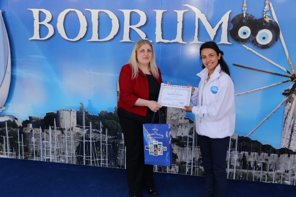 İl Kültür ve Turizm Şubesi adına Eşsiz Bodrum Tanıtım TIR’ına ziyarete gelen şube müdürü Hülya Özer ve şube personelleri, iç turizm tanıtım faaliyetlerine katkılarından dolayı Eşsiz Bodrum Tanıtım TIR’ı personeline teşekkür belgesi verdi. Çok güzel ve turizm için etkili bir organizasyon olduğunu vurgulayan Hülya Özer, “Umarım bu gerçekleştirilen projenin ülkemizin ve Bodrum’un turizminin canlanmasına etkisi olur. Organizasyonda emeği geçen herkese tekrar teşekkür ediyorum.” dedi.