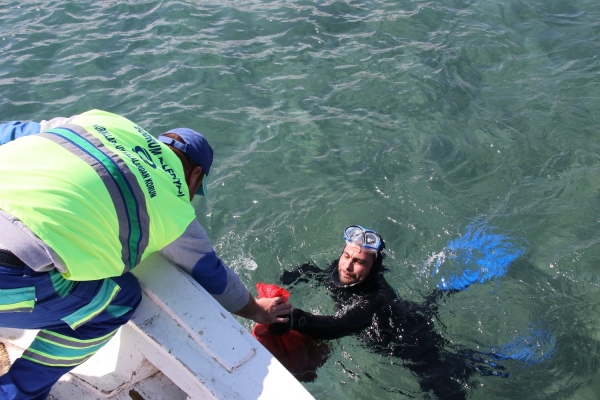 Bodrum Belediyesi’nin sosyal sorumluluk projesi kapsamında gerçekleştirdiği “Denize en çok MAVİ yakışır” Deniz Dibi Temizlik Kampanyası Gündoğan sahilinde devam etti.
