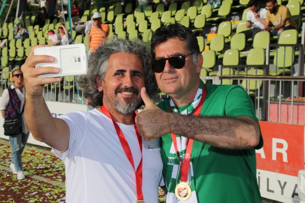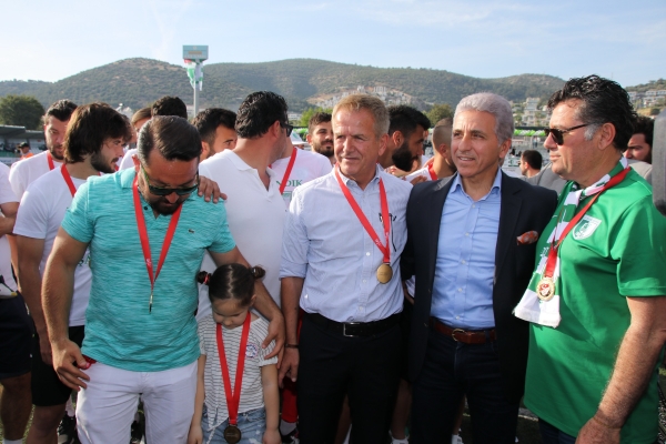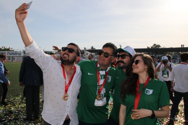 Şampiyonluk kutlamalarına katılan seyirciler bu tarihi anı ölümsüzleştirmek için Bodrum Belediye Başkanı Mehmet Kocadon ile hatıra fotoğrafları çektirdi.