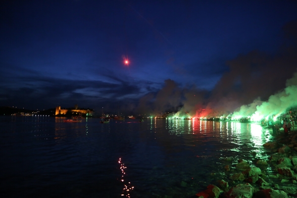 Gece, Bodrum Belediyesi Bodrumspor için Kumbahçe sahilinde düzenlenen şampiyonluk kutlaması ile başladı. Kutlamaya Bodrum Belediye Başkanı Mehmet Kocadon ile eşi Hülya Kocadon ve kızı Zeynep Kocadon'la birlikte belediye meclisi üyeleri ve Bodrumspor taraftarları katıldı. Bodrumspor'un kuruluşu tarihi olan 1931'i temsil eden 1931 kişi, ellerindeki fişekleri aynı anda yakarak Kumbahçe sahilini aydınlattı.