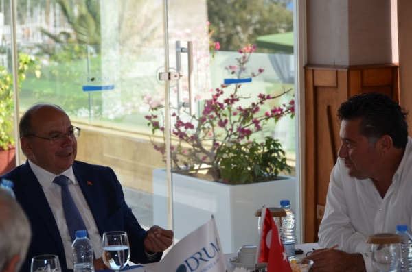 “Biz geçen sene Alman pazarına yüklendik yerel yönetim olarak orada müthiş bir artış yakaladık. Evet 1 milyon dolarlık bir yatırım yaptık belki Almanya’ya ama sonuçta döndüğümüzde de 50 milyon dolarlık bir artı kazandırdık Bodrum’a. Sayın valimiz, sayın kaymakamımız zaten hep yanımızda. Hiçbir zaman hayır demiyorlar. Bugünleri ancak birbirimize destek olarak atlatabiliriz. Bugünkü toplantıda da söyledim Bodrum’un en büyük özelliği huzurdur. Huzuru ekonomik güç sağlar. Bodrum’da ekonomik güç düşmeye başlarsa ahlaki değerler de düşmeye başlar, sonra bu güzelim Bodrumumuzu kaybetmeye başlarız. Biz yerel yöneticilerin en büyük görevi ekonomik seviyeyi her zaman yukarıya çıkarmak. Geçen sene tanıtımla ilgili yerelde o kadar çok faaliyet yaptık ki bütün il ve ilçelere konuşmacı olarak gidiyorum. Yönetici arkadaşlara söylüyorum; korkmayın çünkü biz harcamak zorundayız, benim gelirim sizlersiniz. Hep çözümden yana olalım. Ben Bodrum Belediye Başkanı ve BOTAV Başkanı olarak her zaman yanınızdayım arkadaşlar, hiç korkmayın. Sonuçta kaybetmekten korkarsak kazanamayız, yanlış yapmaktan korkarsak doğruyu da bulamayız. Bir yerden başlamamız lazım. Sayın valim çok teşekkür ediyorum buraya kadar geldiniz, bütün gününüzü Bodrum’a ayırdınız. Biz geçen sene birçok yerden turu operatörü getirdik ama Almanya’ya daha fazla yüklendik. Bu sene Türkiye’ye TIR çıkardık, seneye o TIR'ı Anadolu’ ya değil de İngiltere’ye çıkartalım.” dedi.
