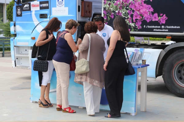 Eşsiz Bodrum Tanıtım TIR’ı görevlileri, çalışmalarında Antalyalılara ve tatilcilere Bodrum hakkında bilgiler verdi. TIR’ı gezen vatandaşlar, üç boyutlu tanıtım filmini izleyerek Bodrum fotoğraflarını inceledi. Gittikleri bölgelerde Bodrum’un tarihini dokusunu, kültürel yapısını, doğal güzelliklerini anlatan TIR ekibi, Bodrum ile ilgili merak edilen sorulara da tek tek cevap verdi. TIR’ı ziyaret eden Antalyalı misafirlere ayrıca Bodrum’un simgesi Bodrum Mandalinasından üretilen kolonya, lokum ve gazoz ikramları yapıldı, Bodrum'u anlatan tanıtım broşürleri ve kitapçıkları verildi.
