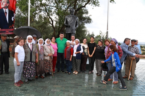 Tören sonrasında Sazköy Muhtarı Erdal Yabacı mahallelerine Atatürk heykeli kazandırdığı için Sazköy halkı adına Başkan Mehmet Kocadon'a teşekkür ederek çiçek takdim etti.