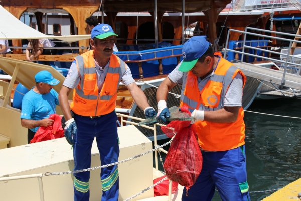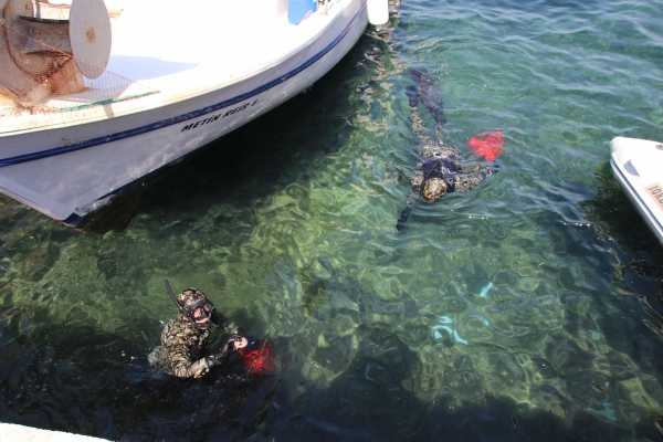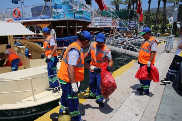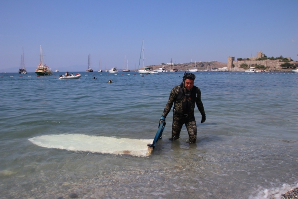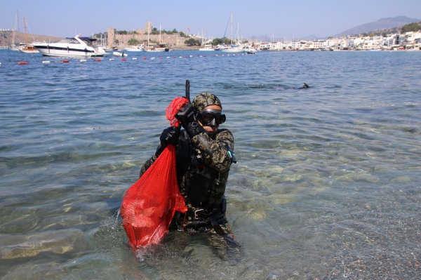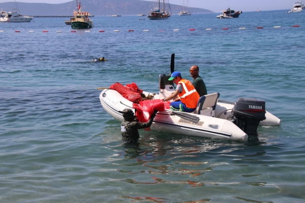 Bodrum Belediyesi’nin “Denize en çok MAVİ yakışır” sloganıyla düzenlediği Deniz Dibi Temizlik Kampanyası bu yıl da tüm hızıyla devam etti. Her hafta Bodrum Yarımadasının bir koyunda gerçekleştirilen çalışmalar, 13 kişilik Bodrum Belediyesi Dalış Ekibi’nin ile birlikte Turgutreis Denizciler Derneği’nin katkılarıyla sürdürülüyor. Deniz dibinden çıkarılan atıklar, kıyıda ayrıştırıldıktan sonra Bodrum Belediyesi 1. Sınıf Atık Getirme Merkezi’ne naklediliyor.