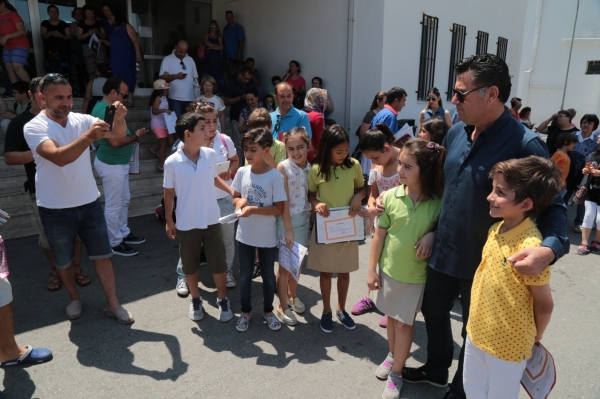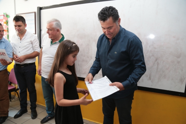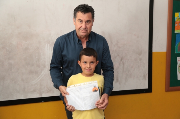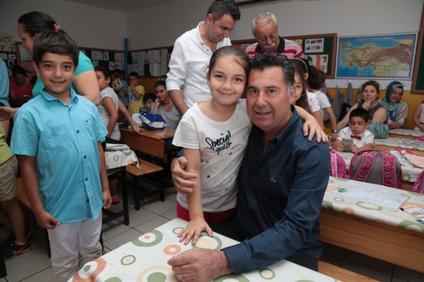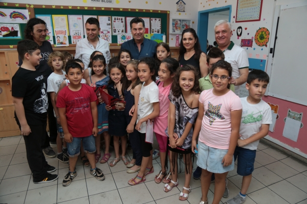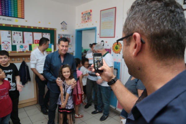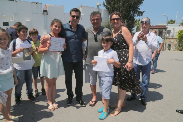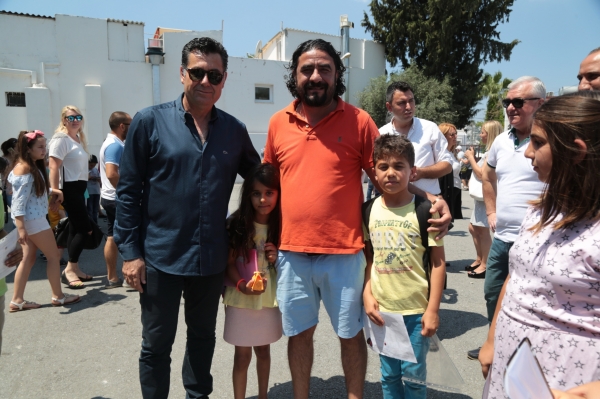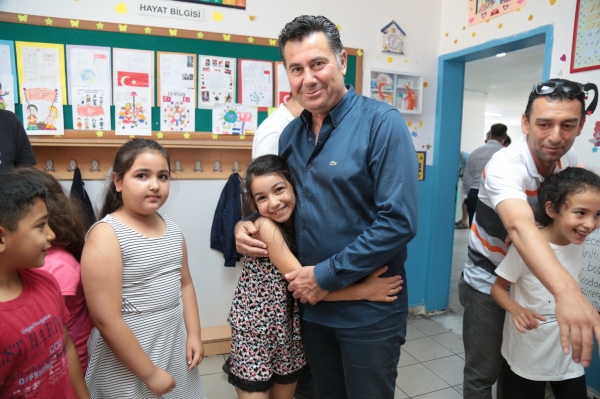 Bodrum Belediye Başkanı Mehmet Kocadon, Güler Mustafa Kızılağaç İlkokulu'ndaki öğrencilerin karne sevincine ortak oldu.