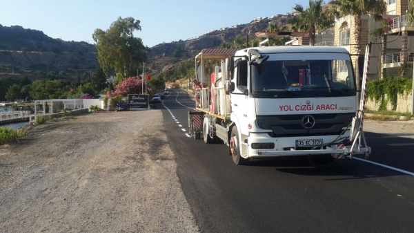 yarımada genelinde çalışmalarını sürdürüyor. Ekipler Yalıkavak Şendoğan Caddesi ile Gündoğan'da Şehit Uğur Öztop Caddesi'nde asfaltlama yapılan bölümlerde yol çizgisi çalışması yaptı.