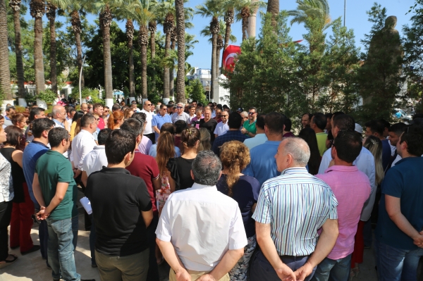 Bodrum Belediye Başkanı Mehmet Kocadon, Ramazan Bayramı tatili öncesi son mesai gününde, Bodrum Belediye binası önünde belediye personeliyle bayramlaştı.