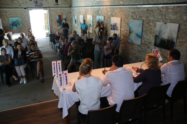 Trafo Bodrum Hakan Aykan Kültür ve Sanat Merkezi'nde düzenlenen toplantıya Bodrum Belediye Başkanı Mehmet Kocadon, DenizBank Genel Müdürü Hakan Ateş, Devlet Sanatçısı piyanist Gülsin Onay ile Uludağ Premium Marka Müdürü Ceylin Erbak Aytekin katıldı.