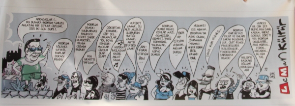Hazırlanan tasarımda Bodrum Belediye Başkanı Mehmet Kocadon "Arkadaşlar bu duvaraBodrum'umuzu anlatan bir şeyler çizelim!.. Size iki gün süre!.." diyor. Çalışmaya katılacak olan karikatüristler de akıllarından geçen konuları tek tek sıralıyor.