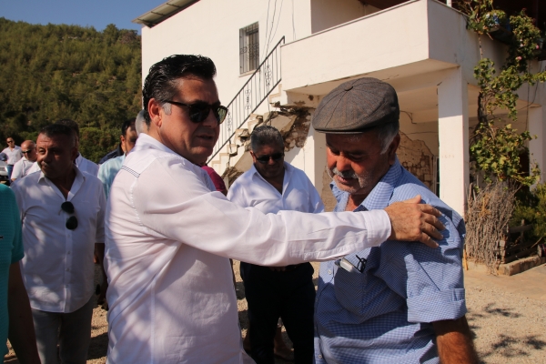 Depremin ardından Bodrum Belediye Başkanı Mehmet Kocadon, evleri hasar gören depremzedeleri ziyaret ederek bölgede incelemelerde bulundu.