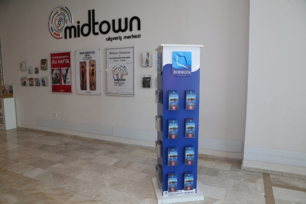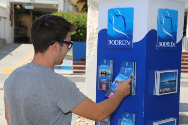 Bodrum’a tatile gelen misafirlere Bodrum’u daha iyi tanıtmak amacıyla alışveriş merkezlerine Bodrum tanıtım broşürlerinin bulunduğu deskler yerleştirildi.