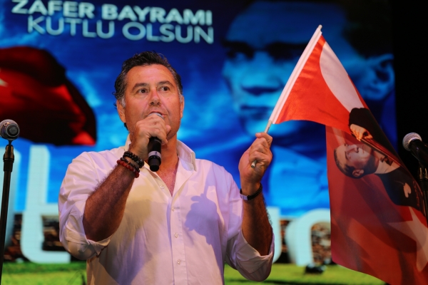 “Öncelikle bu güzel Bodrum akşamında 95 yıl önce yaşanan büyük mücadelenin ardından, bugün bu bayraklarla yürümemize sebep olan; özgürlük, birlik, barış içinde yaşamamızı sağlayan başta Ulu Önderimiz Mustafa Kemal Atatürk ve silah arkadaşlarına can-ı gönülden şükranlarımı sunuyorum. Bugün birey olabildiysek, medeni şekilde yaşıyorsak hepsi o güzel insanların eseridir. Bunların kıymetini iyi bilmek lazım. Şu birlik beraberliğin bütün güzel ülkemde olması lazım. Gelin, Bodrum’dan elimizdeki bu güzel bayraklarımızla öyle bir meşale yakalım ki içimizdeki sevgi, birlik, hoşgörü bütün güzel ülkemi sarsın. Yolumuz Ulu Önder’imizin gözündeki ışık yoludur, medeniyet yoludur, uygarlık yoludur. Ve sloganımız da şudur; Yurtta barış, dünyada barış! Ne mutlu Türküm diyene! Bu güzel dileklerimle Zafer Bayramı’nızı ve Kurban Bayramı’nızı en içten dileklerimle kutluyorum; hepinize sevgi ve saygılarımı sunuyorum. İyi ki varsınız, Türkiye'nin medeni, aydınlık yüzü insanları! Hepinizle gurur duyuyorum.''