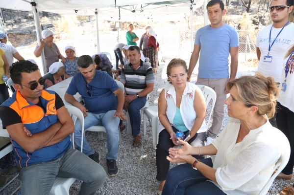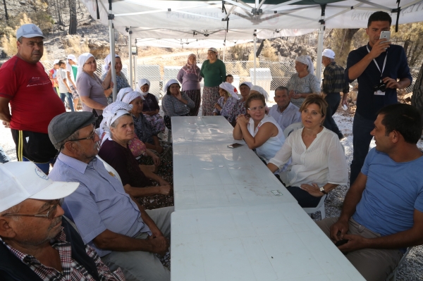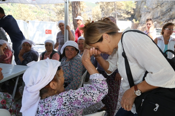 Muğla ili Menteşe ilçesine bağlı Zeytinköy'de meydana gelen orman yangınının ardından bölgeye yardımlar devam ederken, Bodrum Belediye Başkanı Mehmet Kocadon'un eşi Hülya Kocadon, Zeytinköylüleri ziyaret etti. Köylülerin hepsiyle tek tek ilgilenip konuşan Hülya Kocadon’un aracılığıyla Zeytinköylüler, destekleri ve yardımları için Belediye Başkanı Mehmet Kocadon'a teşekkür etti.