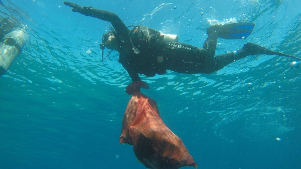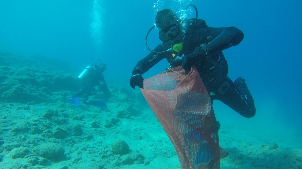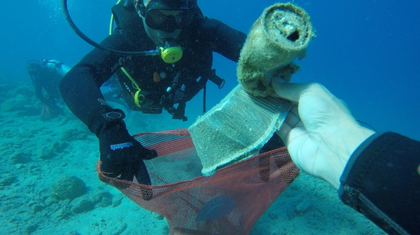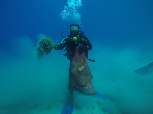 “Cevat Şakir’in İzinden Gökova’ya” sloganıyla bu sene ikincisi yapılan Gökova Koyları Deniz Dibi Temizliğinde denizden yaklaşık 200 kilogram katı atık çıkarıldı. Bodrum Belediyesi dalgıçları çıkardıkları ağ parçaları, tekne merdiveni, güneş gözlüğü, cam ve plastik şişe ile batarya gibi atıkları katı atık toplama teknesi Venüs'e teslim etti.