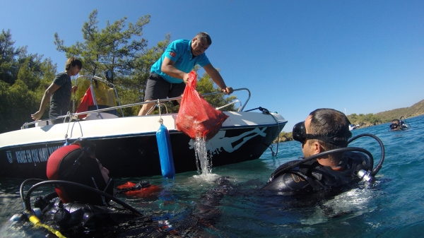 Çevreyi koruma bilincinin artırılmasına katkı sunmak amacıyla Bodrum Belediyesi ekipleri tarafından gerçekleştirilen Gökova Koyları Deniz Dibi Temizliği, üçüncü gününde Tuzla koyunda devam etti.