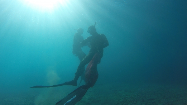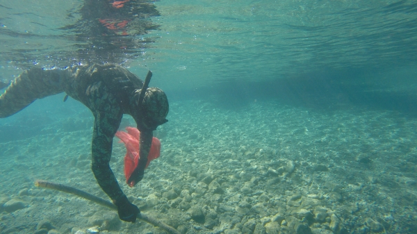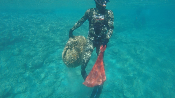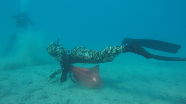 Bodrum Belediyesi Dalış Ekibinde görevli 13 dalgıç ve katı atık toplama teknesi Venüs'ün katıldığı Gökova deniz dibi temizliği çalışmaları, beşinci gün Çatı koyunda yapıldı.