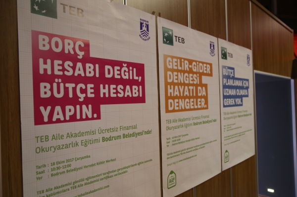 Türk Ekonomi Bankası (TEB) ile Bodrum Belediyesi arasında imzalanan işbirliği protokolü kapsamında Bodrum’da Finansal Okuryazarlık Eğitim Projesi, ilk olarak Bodrum Belediyesi personeline verilen eğitimle başladı. TEB Bodrum Şube Müdürü Orhan Türkçü tarafından, 150 belediye personeline verilen eğitim Herodot Kültür Merkezi’nde gerçekleştirildi.