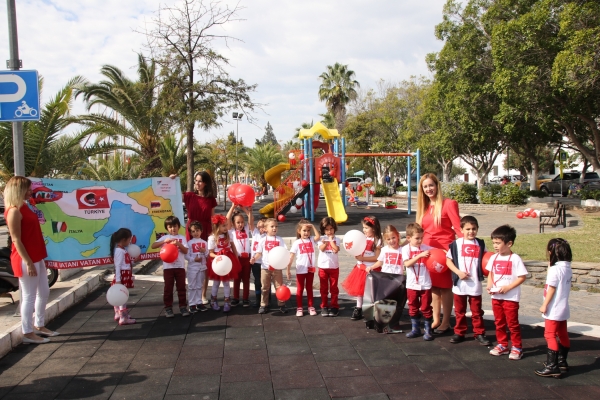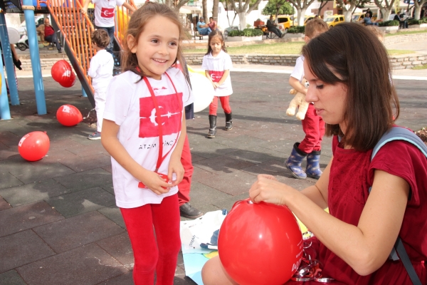 Bodrum Küçük Şeyler Anaokulu’nun 4-5 yaşlarındaki minik öğrencileri, Bodrum’un Yalıkavak, Konacık, Gündoğan, Umurça, Kumbahçe ve Tepecik mahallelerinde bulunan Bodrum Belediyesi’ne ait çocuk parklarını, 29 Ekim Cumhuriyet Bayramı sebebiyle kırmızı beyaz balonlarla donattı. Türkiye Cumhuriyeti ve Ulu Önder Mustafa Kemal Atatürk’e olan sevgiyi ve bağlılığı ifade etmek ve özellikle çocuklar üzerinde bu konuda farkındalık yaratmayı amaçlayan etkinlikte minikler, Mustafa Kemal Atatürk yazılı t-shirtleri ile parkları süsledi.