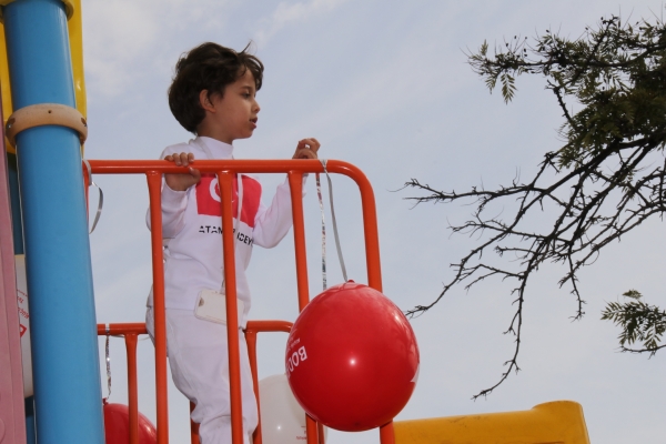 MİNİKLERDEN PARKLARA KIRMIZI BEYAZ BALON